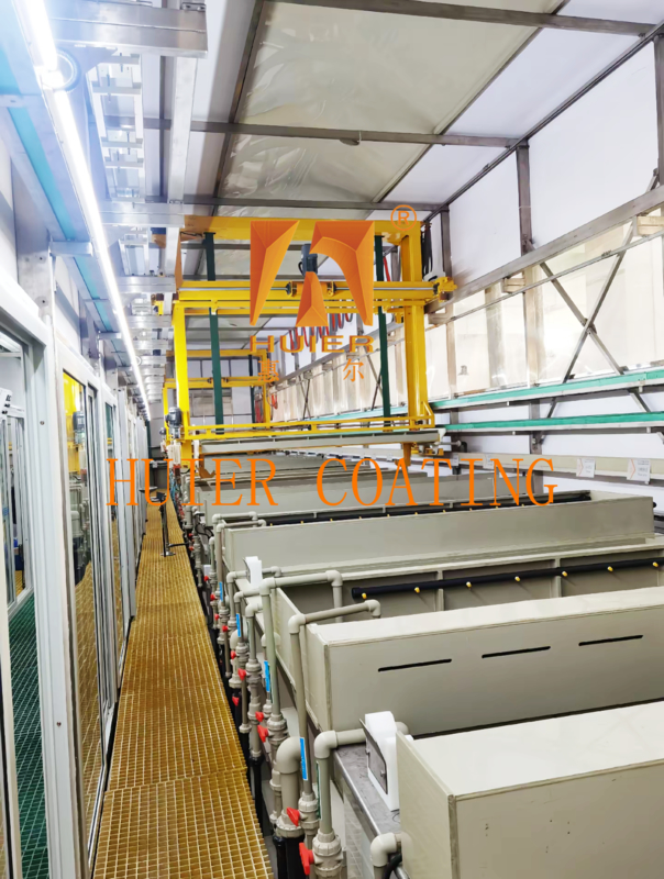 Φόρτωση κρεμάστρας: Το τεμάχιο στερεώνεται στην κρεμάστρα με ένα αυτόματο τσοκ και μετακινείται στην δεξαμενή ηλεκτρολυτικής επιμετάλλωσης από τον γερανό σύμφωνα με την προκαθορισμένη διαδρομή.